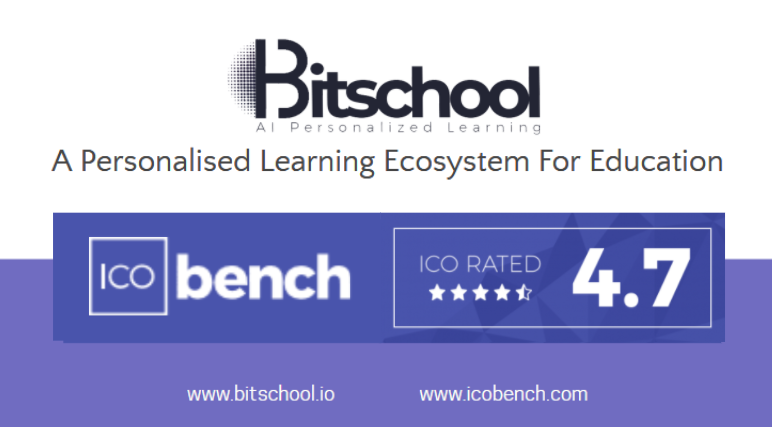 BitSchool memiliki rating 4.7 / 5.0 yang sangat tinggi dari ICO Bench yang merupakan platform rating ICO yang paling populer dan terpercaya. Peringkat ini didasarkan pada kombinasi analisis profil ICO obyektif termasuk tim, whitepaper, tonggak sejarah, video, info ico, pemasaran media sosial, dll oleh bot cerdas dan penilaian ahli subyektif. Anda dapat memeriksanya di https://icobench.com/ico/bitschool.